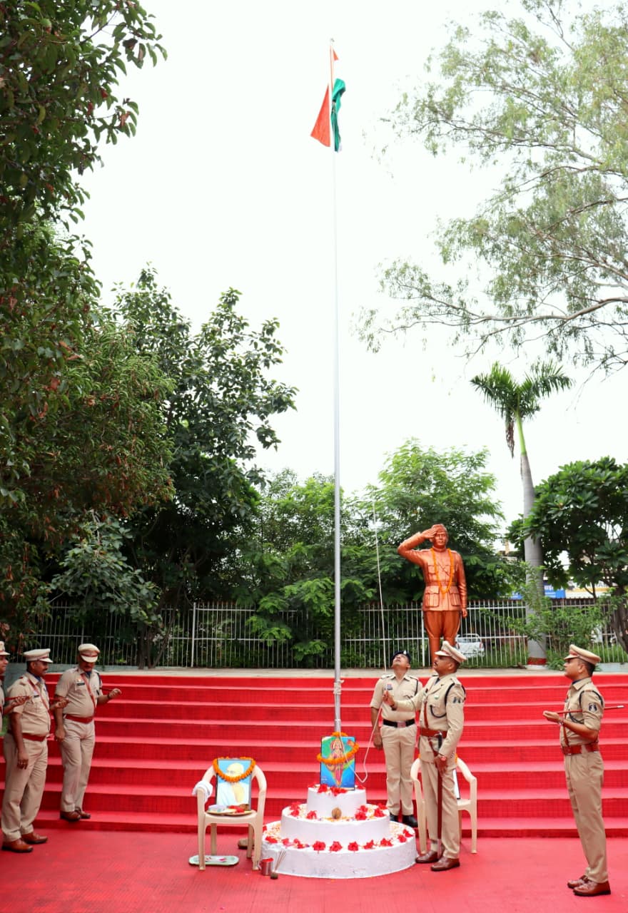 79 वाॅ स्वतंत्रता दिवस के अवसर पर पुलिस अधीक्षक श्री धर्मेंद्र सिंह द्वारा कार्यालय में फहराया गया तिरंगा।