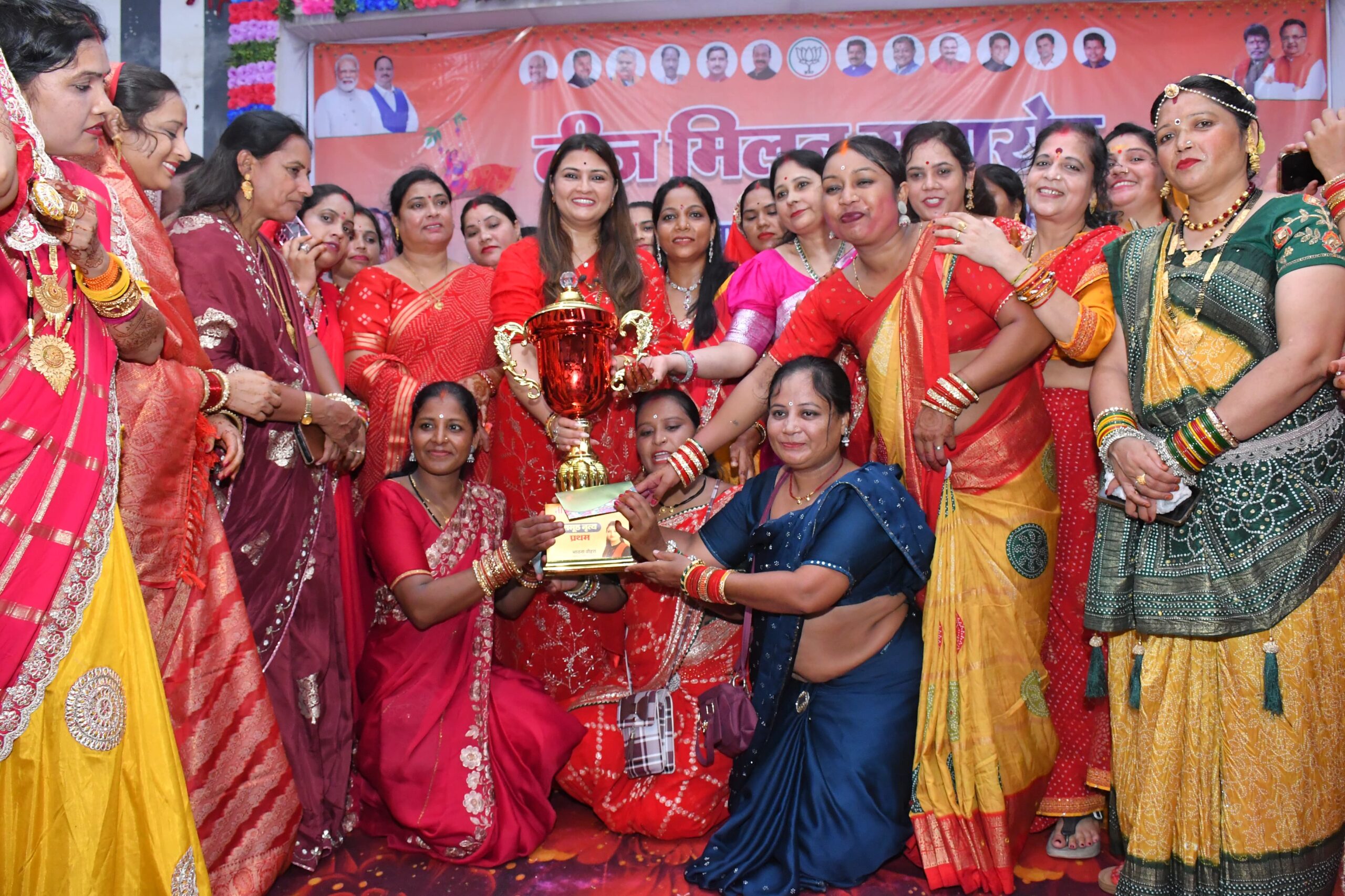 कार्यक्रम में सामूहिक नृत्य प्रतियोगिता में प्रथम स्थान आने वाली समूह की महिलाओं को 11,000 रुपए, द्वितीय स्थान को 5,100 रुपए, तृतीय स्थान को 2,100 रुपए एवं ट्रॉफी से पुरस्कृत किया गया। इसी तरह एकल नृत्य प्रतियोगिता में प्रथम स्थान को 5,100 रुपए, द्वितीय स्थान को 2,100 रुपए, तृतीय स्थान को 1,100 रुपए एवं ट्रॉफी से पुरस्कृत कर बधाई व शुभकामनाएं दी।