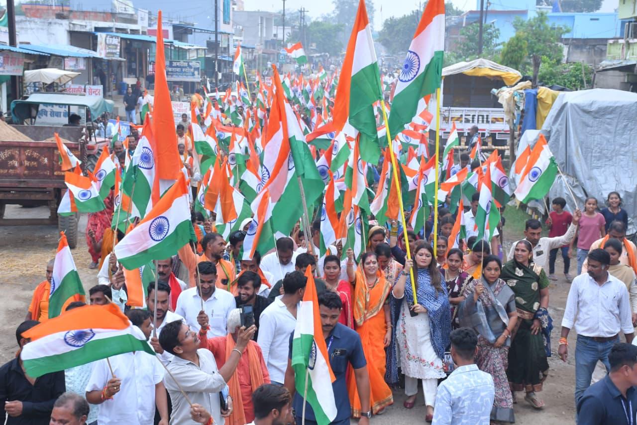 स्वतंत्रता दिवस के उपलक्ष्य में माननीय प्रधानमंत्री श्री नरेन्द्र मोदी जी के आह्वान में आज देशभर में ऑपरेशन सिंदूर की सफलता एवं हमारे सेना के जवानों व स्वतंत्रता सेनानियों के सम्मान में विधानसभा स्तरीय तिरंगा यात्रा निकाली गई। इस अवसर पर पंडरिया विधानसभा में भी विधायक भावना बोहरा के नेतृत्व में कुण्डा मंडल में भाजपा पदाधिकारियों, कार्यकर्ताओं एवं क्षेत्रवासियों द्वारा विशाल तिरंगा यात्रा निकाली गई, जिसमें विधायक भावना बोहरा और सैकड़ों की संख्या में कार्यकर्ताओं ने क्षेत्रवासियों को हर घर तिरंगा अभियान में शामिल होने का आग्रह किया।